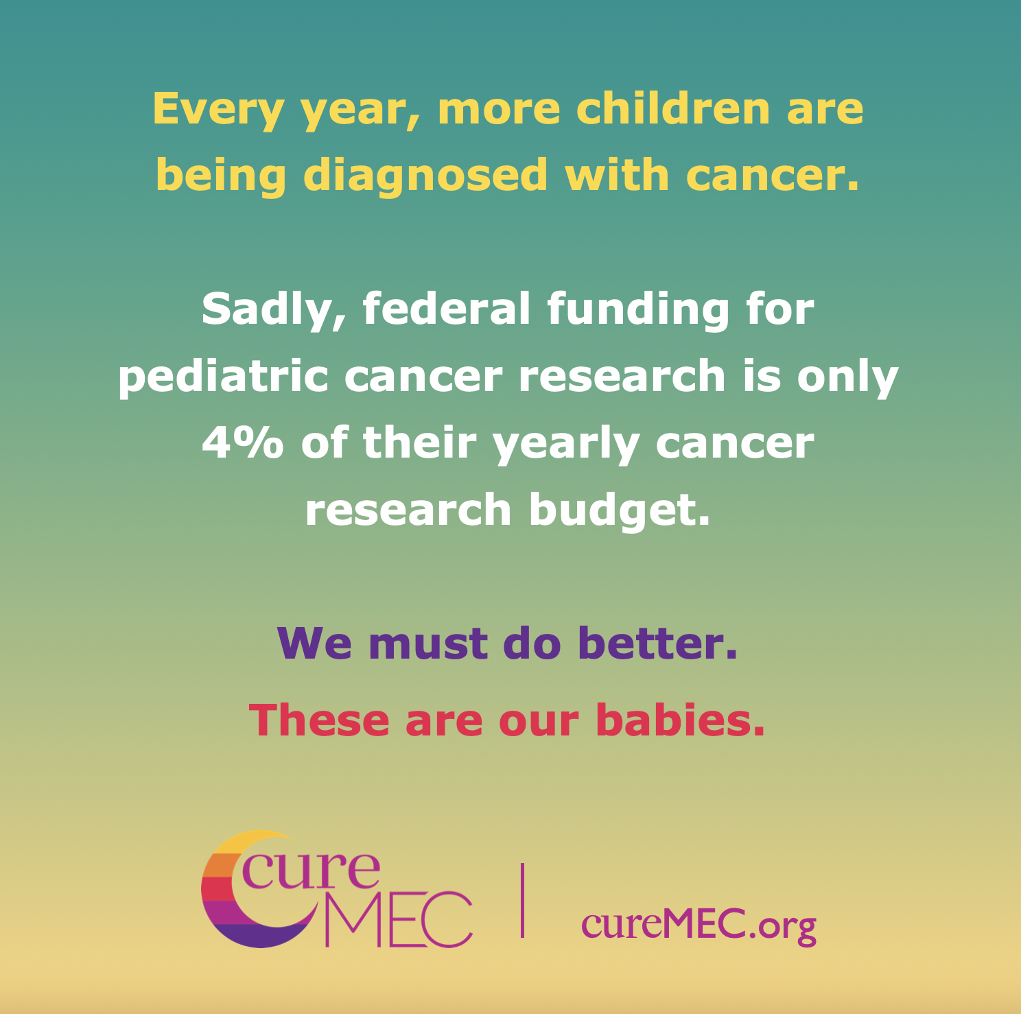 Every year, more children are being diagnosed with cancer and yet federal funding for pediatric cancer research is still only at 4% of their yearly cancer research budget.